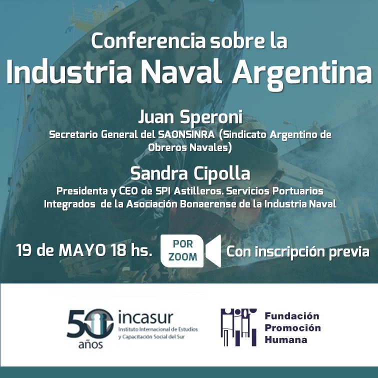Incasur invita a la conferencia sobre la industria naval argentina el próximo 19 de mayo a las 18 hs. desde la plataforma Zoom.